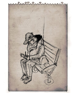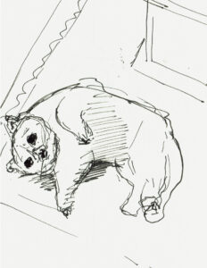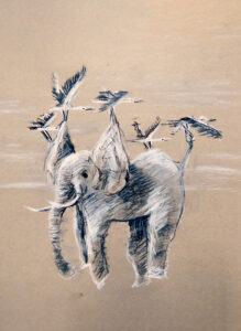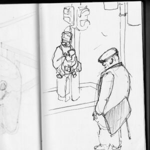 Viele meiner Bilder sind digitalisiert. Wie hier im Bild, kann ich die Skizzen farblich hinterlegt als Druckgrafik anbieten. Von A4 bis Wohnhausgröße. Das gilt auch für die Gemälde.